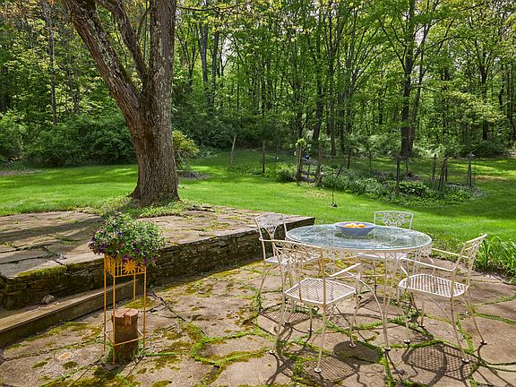 Nestled within six beautiful acres of lawns, rock outcroppings, and towering and flowering trees, this quintessential storybook home is perfectly situated a mere 1.4 miles from the center of Red Hook Village. Built in the 1800s (with a recent architecturally respectful addition), the full-length front porch welcomes you into timeless charm. Hand-hewn posts and beams, lovely nooks and French doors enhance the poetic mood. Sunlight filters through the generous windows shedding light upon the exquisite wide board floors. A delightful 3-direction sunlit living room, with a central wood burning hearth, unfolds into the magical property. The beamed dining room is drenched in light and the eat-in country kitchen with rustic cabinetry opens onto a stone patio beneath a leafy canopy to be enjoyed any time of day or evening. Upstairs, we are graced by a lovely landing and bookcase full of interesting reads. The dreamy master bedroom with its 4-poster bed, long writing desk and balcony are inspirational. A second bedroom is gabled and intimate, and the spacious full bathroom has a pedestal sink and inviting clawfoot tub beneath a halfmoon window. Above the garage, we have an aerie in the tree branches providing a very sweet 3rd bedroom and bath. Secluded off a lovely country walking road, this is truly rustic enchantment culled from a fairy tale. Experience total privacy, minutes from Rhinebeck, Tivoli, Bard, and Red Hook villages. Your very comfortable Summer retreat and sanctuary is surrounded by all the Hudson Valley has to offer, yet ages and miles away. Available Seasonal and Year Round Tenant pays tenant agent.