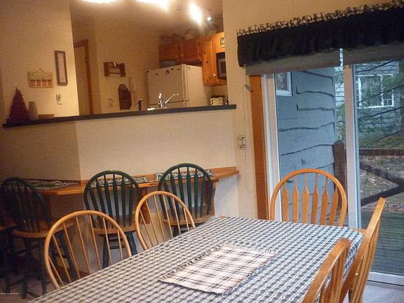 Lovely 4 bedroom, 2.5 bath Cottage featuring covered porch into foyer entry, first floor Master Bedroom Suite with Jacuzzi tub, fully equipped kitchen over looks great room with dining area offering sliders to deck and living area with stone faced wood burning fireplace that can also be enjoyed from the spa room with sunken hot tub. Great location at Jack Frost Ski Area, 1 mile to PGA Golf Course, Membership to Mt. Lake Club for Lake, Beach and Pool in the Summer months. Close to all year round Pocono Attractions!!
