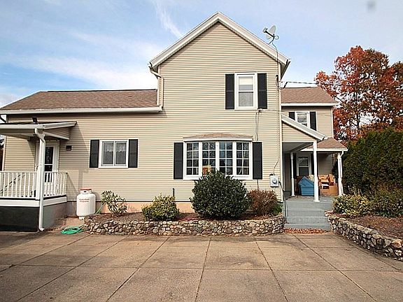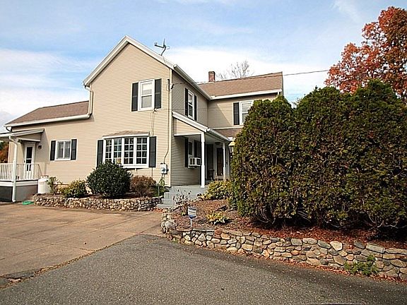 Gracious Colonial with rolling meadow on over 2 acres. Great for horses or gardening, there is water available in the fields. Large exterior building with front entrance, garage door, connection for wood/coal stove, could make a great studio or working on your hobbies. There is also a separate shed. Kitchen has wood cabinets, breakfast bar, all appliances and open to large dining room with wainscoting, picture window and beamed ceiling. Large first floor laundry room with built in ironing board. Bedroom with sliding glass door to deck could be a great family room. Second floor offers a Master bedroom with large walk in closet, 1/2 bath, and 2 additional bedrooms. Basement has a full bath. Home is wired for a generator. Newer furnace 2016, windows and siding.