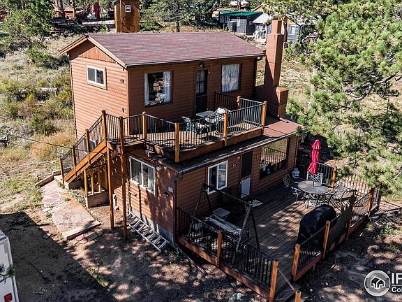 Well maintained cabin in Red Feather Lakes Village located in the mountains of Northern Colorado. This cabin is turnkey with furniture included, ready for you to enjoy, everything is ready to go with new or newer roof, hot water heater, pressure tank, paint, decking, almost all windows were replaced. Perfect for a getaway for multiple people with 2 separate entrances for the different living spaces, each floor has bedrooms and a bathroom, the kitchen and living are on the main. Cabin can be used year-round or seasonally and is serviced by well and a septic vault. 5 min walk to the Village, Restaurant, or private lake. Lovely quiet neighborhood. Cabin is winterized and deck items are in the cabin, forgive the cramped quarters.