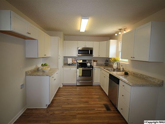 Welcome home to this beautiful Cape Cod located in the West Morgan school district! This home has 4 bedrooms, 2.5 baths and a HUGE Bonus Room upstairs that could also work as a 5th bedroom. Brand new roof and HVAC units. Fully remodeled kitchen with new cabinetry, counter tops, and stainless steel appliances. Many more updates include: vinyl siding, laminate wood floor in main living area, tile in baths, bathroom vanities, carpet, paint, exterior doors, and electric water heater. Extra large 720 square foot detached 2-car garage would also make a great workshop! Large 0.84 acre lot. Fenced backyard. Home has a wireless security system.
