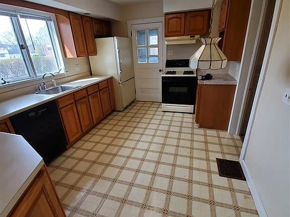 First Floor has Kitchen with Stove, Refrigerator and Dishwasher, 1 Bedroom, Living Room, Dining Room and Enclosed Porch. Second Floor has Kitchen with Stove and Refrigerator, 2 Bedrooms, Living Room, Dining Room, Enclosed Porch, Walk Up Attic. First Floor has been recently painted but 2nd floor will need to be renovated to be able to be rented out. 2 Car Detached Garage.