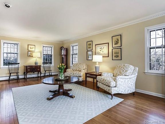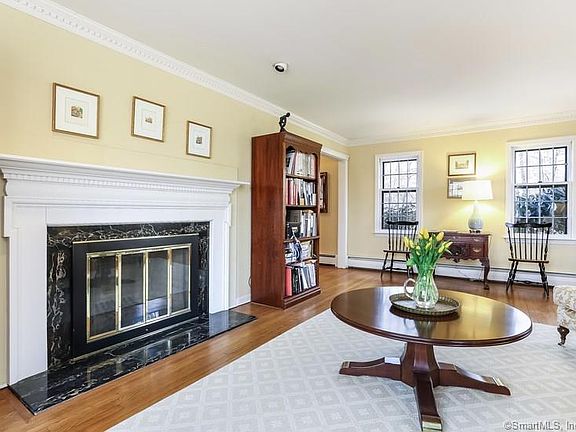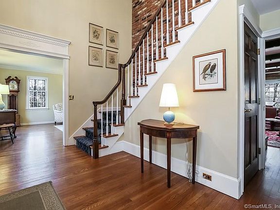 JUST REDUCED Quintessential Connecticut country home in sought after south Wilton neighborhood convenient to Wilton and Westport. Private setting on quiet cul de sac with circular driveway and wonderful curb appeal. Sun-filled home with spacious formal living room with fireplace and formal dining room. Updated eat-in kitchen opens to deck and beautiful flat backyard and is adjacent to family room with vaulted ceiling. Library with fireplace and beautiful millwork adds flexibility to the floor plan. Large master bedroom with updated bath and walk-in-closet, four good-sized bedrooms, updated hall bath and laundry complete the upstairs. Third floor is plumbed for bathroom with small door to attic for entry. Great walk-out lower level with rec/play room and lots of storage. Enjoy sunrises, summer block parties, city water and much more. Fabulous location for commuters---close to Merritt Parkway, train, schools and shopping.