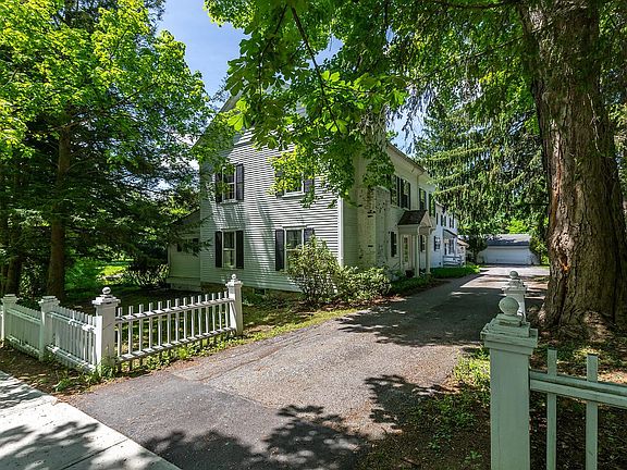 Large colonial in historic Old Bennington. Originally built in 1848 house sits on 2.2 acres with pond. Home includes five bedrooms, a formal dining room, two living rooms and a family room, screened porch, detached two car garage, and barn. Authentic period details, beautiful example of quality New England construction that is also spacious and livable by today’s standards. Walk across the street to visit the Old First Church or take a stroll to the Bennington Battle Monument. Overlooking the large backyard and pond. Enjoy this charming Old Bennington Village home in a walkable village location. Easy access to NY and MA.