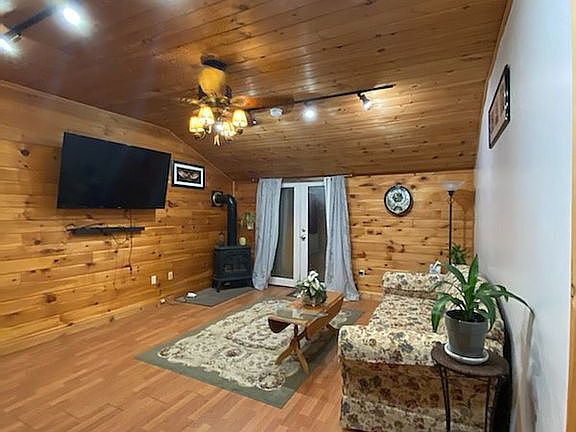 Many renovations done - a few left to go. Come and make it your own. Cozy 1 bedroom/1 bath on beautiful country lot with perennials and fruit trees. New kitchen, new windows, new vinyl siding, new water filtration system, new 2-br septic system installed six years ago, arched ceiling & walls of knotty Pine with sliders to view the pastures beyond. Brick fireplaced dining area, laminated wood flooring. Great for first-time home buyer. Cute home with lots of potential - located on a quiet, dead-end road.