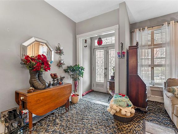 Spacious five-bedroom home with endless potential. This 5-bedroom, 1.5-bath home is waiting for your vision! Step into the entry foyer leading to a cozy living room with a charming staircase to the upper level. A separate dining room offers ample space for gatherings and features an additional staircase for added character. The kitchen includes a glass-top stove/oven and connects to a convenient mudroom. Enjoy outdoor living with a fenced rear yard, a rear deck, and a welcoming front porch. Parking is available in the rear for added convenience. Property in need of repairs and updates, including the roof, kitchen, baths, windows, and enclosed porch—an excellent opportunity for renovation and customization to make it your own!