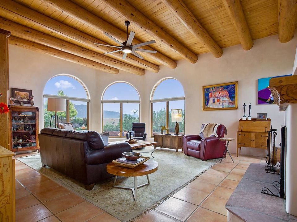 Searching for your slice of paradise in Taos? An enviable lifestyle awaits at this Southwest Adobe-style home offering you a life of unparalleled leisure and luxury. From the sought after location to the sweeping mountain views, this gem will surely delight you from the moment you arrive. Impeccably maintained, the dwelling combines elegance with comfort. This is reflected in enchanting interiors featuring exposed wood vigas and tile floors. As you relax in the living room you enjoy picturesque views of the Taos Mountains from the living room's arched windows with a wood fire burning fireplace crackling in the background. Plentiful cabinetry, an oversized island, and modern lighting fully equip your gourmet kitchen. Just off the dining area are glass doors that enable easy access to the patio where you'll admire beautiful flower beds along with a stunning view of the Taos Mountain. Four bedrooms and three baths make welcome havens of relaxation after a long day. Among the many fine features of the primary suite are a fireplace, direct access to a spacious private patio, and an ensuite fitted with double vanity and a walk-in shower and oversized Jacuzzi tub. Connected to the side of the garage is a heated workshop/studio space and to the rear of the attached garage are three storage lockers in which you can securely keep bikes and ski equipment. The residence is ideally set on a private road and completely fenced in ensuring the utmost tranquility. Equine enthusiasts will be pleased to know horses are allowed here, and there's even a two-stall barn and tack room for your convenience. Other notable highlights include an office nook and a sizable laundry room with built-in storage and a solar operated gate at the entrance to secure the property. Plus, you'll appreciate easy access to shopping, skiing, and hiking options nearby. Start living the dream life and come take a tour before it's gone for good!