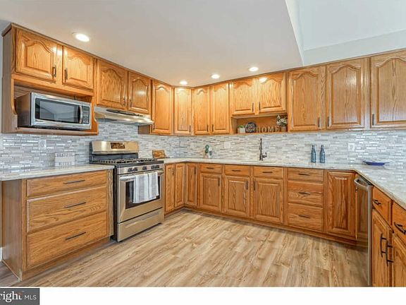 One-of-a-kind, fully renovated house in Maple Shade with Low Taxes! This 4 bedroom, 2 full bathroom cape has been tastefully upgraded from top to bottom! As you enter the front door, you will find beautifully refinished, original hardwood floors, bay window letting in an abundance of light, unique reclaimed wood accent wall and stunning light fixture. Continue on into the kitchen and prepare to be WOWED!! The kitchen is open to a HUGE addition which offers cathedral ceilings and the entire back wall of the home is covered in reclaimed wood and graced with windows or sliding glass doors. Kitchen offers an abundance of oak cabinetry accented by granite counters which overhang on the one side to create the perfect casual eating area to seat 4 comfortably. Tile backsplash, stainless appliances and recessed lighting are just some of the remarkable upgrades here. Continue through to the other side of the addition into what could make a fabulous family room. This room also has sliding glass doors to the back deck which spans the full width of the home and a closet for added storage. Back though the living room and down the hall, the hard wood continues into two spacious bedrooms. A full bath on this level has been upgraded with tile floors, new vanity, tub with stunning tile and new fixtures throughout. Also off the hallway is access to the basement. Taking the beautifully refinished staircase up, you will find a shockingly large full bath with all new fixtures and finishes. Added bonus is at the end of this full bath is a walk in closet which goes on and on! Third and fourth bedrooms are on opposite sides of the hall providing easy access to the bath. New roof, new HVAC, new hot water heater, and all new electrical wiring throughout the home. All proper permits obtained! Excellent location, walking distance from Main Street, schools, shopping, dining and easy access to major roadways such as 73, 38, 295 & NJTP! Schedule your showings quickly, this one will not last long.