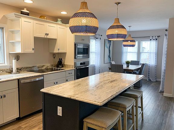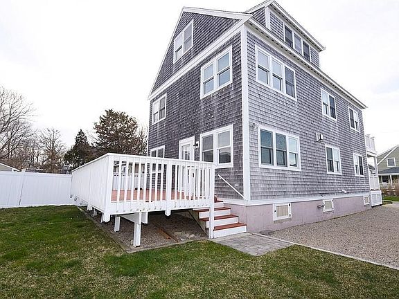 A block from Rexhame Beach this renovated year round, summer or investment home offers breathtaking views. Walk up the front steps and enjoy the sound of waves crashing from the charming front porch. The moment you enter this home you are captivated by it's beauty. With almost 3000 sq./ft. of living space, each room has a unique identity, however joined in unison by the new flooring, aside from the spacious updated kitchen, the main level hosts a breakfast nook, living room, den/library, bedroom, full bath and a fireplace. The second level has an inviting master bedroom, full bath and full size laundry. Walk down the hall to double doors that open to a grand bedroom w/ a splendid balcony w/stunning views of the Atlantic ocean. Pass by another bedroom as you go up to the third floor w/ a partial kitchen, full bath, loft or office - endless possibilities. All of this is highlighted by a lovely back yard w/ a deck to enjoy grilling a shed for storage plus an expanded driveway.