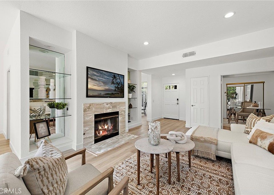 **43 Oak Knolls in Coto De Caza is a first floor condo in the Fairway Oaks community of Coto De Caza! An attractive floor plan perfect for a buyer that's downsizing and doesn't want stairs, a rental property, or in-law property for a family living in the area. New vinyl floors, kitchen counter, new appliances, bathroom vanities, recessed lighting, and freshly painted! New ceiling fans, painted cabinets with new knobs too! A direct access 1 car garage along with a second 1 car garage (detached), view of the golf course and community pool. No steps inside the unit either and the home offers lots of windows and natural light throughout!