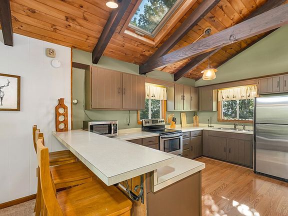 Escape to a private retreat in the heart of Madison, where this charming chalet awaits on a wooded half-acre perch. Surrounded by nature, this haven offers a tranquil atmosphere, yet is just moments from the excitement of Conway, North Conway, and the White Mountains' endless adventures. Inside, the open-concept living area boasts soaring cathedral ceilings, large windows, and exposed wood beams, perfect for gathering and taking in the breathtaking views of the surrounding forest. The upper level features a fully equipped kitchen, dining area, and living room with a wood burning fireplace, leading out to an expansive back deck which is ideal for morning coffee or outdoor entertaining. The lower level provides ample space with three bedrooms and a full bathroom. With its prime location and natural beauty, this chalet is a rare find, offering the perfect blend of relaxation and adventure!