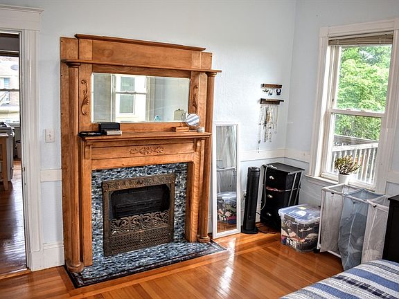 TREE TOP VIEWS IN HIP HYDE SQUARE! AVAIL JAN !st... Living room with decorative fireplace mantel, pocket doors that connect with the dining room and private access to a spacious front porch. Ceramic tiled bathroom and eat in kitchen with gas stove, dishwasher, and disposal plus a spacious pantry for even more storage. WASHER & DRYER in unit. Kitchen connects with private back porch with incredible views over Jamaica Plain and all the way out to the Blue Hills! Master bedroom with decorative fireplace and gorgeous stained glass window. Second bedroom with great light. Basement Storage. Located just 500-600ft from Hyde Square, enjoy shopping at Whole Foods, Tres Gatos, and pubs like the Brendan Beehan. Additionally, Jamaica Pond is only 1000ft or so nearby, Stonybrook T (Orange Line) is about 600ft, and Bus #39 is 500ft.