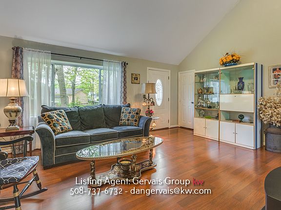This lovely ranch sits back off the road on a beautiful and private tree lined lot. Rear deck and patio are terrific for outdoor entertaining. Newer roof, doors and windows, along with well kept clapboards on front and cedars on sides and rear mean you can enjoy this home rather than repair it. Beautifully updated cabinets, granite counters, tile back splash, laminate flooring and stainless appliances in kitchen. Large living room features a cathedral ceiling and laminate floor. Laminate flooring continues down the hall and through all 3 bedrooms. Master has walk-in closet and updated half bath. Main bath has been updated and also has a washer/dryer closet. Large dry basement is great for storage or future expansion. A must see home.