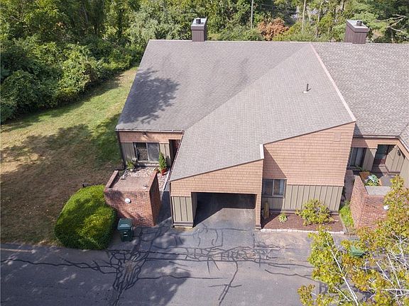 Located in the Wesleyan Hills Neighborhood of Middletown, This Unique, Mid-Century Modern Condo, Designed by Award-Winning Architect, Louis Sauer, offers both a Country Setting and Access to City Conveniences. The property was designed to give residents private entrances and private outdoor spaces. This unit is located at the end of the small, 38-unit complex, so you will have access to a spacious back and side yard. The TOTALLY REMODELED KITCHEN Features a Glass Tile Backsplash, Caesarstone Quartz Countertops, Stainless Steel Appliances, a Gas Range, and Commercial-Grade Compressed Quartz Tile Flooring. The Dining Room offers high ceilings and a slider to a private upper patio with a motorized, retractable awning and steps to the lower brick patio with a lighted, covered pergola. In the sunken living room, you will find a remote-controlled propane fireplace, built-in bookcases, and a slider to the lower, brick patio. There is a Newer, Energy-Efficient HVAC System and the well-insulated attic is accessible from a pull-down staircase in the Master Bedroom. The unit also includes three outdoor storage sheds, one designated outdoor parking space, and a carport with an EV CHARGING STATION. The Wesleyan Hills Community offers miles of pathways through ponds, historic barns, and access to Wadsworth Falls State Park.