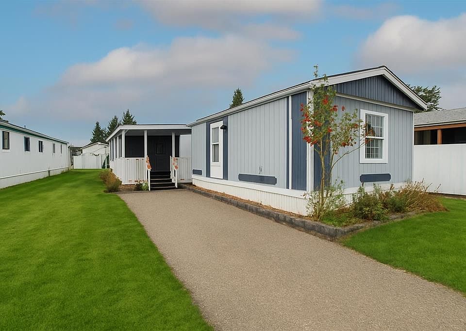 Charming & Affordable Manufactured Home – Move-In Ready! Welcome to this extensively updated 3-bedroom, 2-bathroom mobile home located in a quiet and friendly community. This home offers 1292 sq ft of comfortable living space, perfect for first-time buyers, downsizes, or anyone looking for low-maintenance living. Step inside to find an open-concept living and dining area, flooded with natural light and featuring, new flooring, updated fixtures, and fresh paint. The spacious kitchen includes ample cabinet space and modern appliances, ideal for everyday living or entertaining guests. The primary bedroom boasts an ensuite bathroom and generous closet space, while the second and third bedrooms are perfect for family, guests, or a home office. includes: washing machine/dryer (2025), Poly B replaced (2024), both bathrooms updated (2024), kitchen improved with open concept layout/large island added/new countertops/sink/faucet (2025), all new laminate/vinyl plank flooring (2025), all new interior doors/knobs (2025), all new lighting (2025), professionally painted (2025), new outdoor carpet and privacy shades (16x8)on deck.