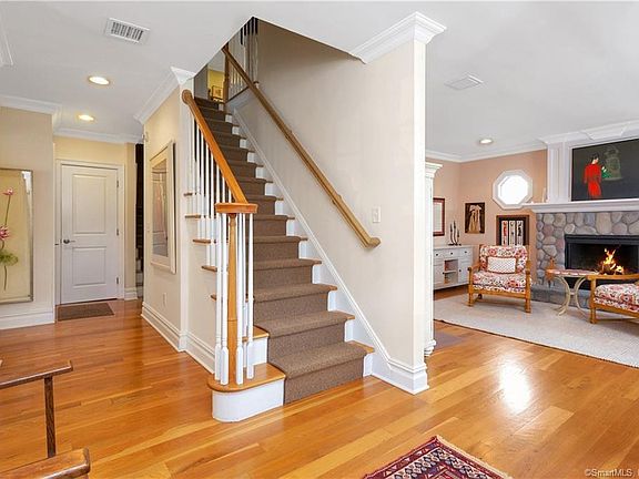 Tucked away on a quiet lane in the midst of Fairfield's vibrant downtown, this exceptional Peter Cummings designed townhouse is full of surprises. Covered porch & gracious foyer lead to LR w/gas fieldstone fplc & built-in shelves; alternately to DR featuring an abundance of windows. The open Kitchen/Great Room w/Thermadore 6 burner range, large island, 2nd gas fireplace & more built-ins, is an inviting space to prepare meals and relax, plus, large enough to host a crowd, leading to prof. landscaped private backyard & patio. The truly Wow Family Room is accessed via a half staircase en route to 2nd floor BRs & laundry room. Two half baths are thoughtfully located on the main level as well as near the Family Room. Primary Bedroom Suite includes double walk in closets, sumptuous bathroom, office and exercise rooms 2 additional roomy BRs share a Jack & Jill bathroom. Mudroom leads to 2-car garage, w/brand new garage door, GarageTEK storage system & extra fridge/freezer. This gem of a home has exceptional room scale & flow, high ceilings, wider than average hardwood flooring, built-ins & windows galore, as well as the rare combination of quiet setting complimented by a Very central in-town location for easy walks to gazebo concerts, farmer's market, restaurants, library, theaters, boutique shopping & Metronorth train platform. Also, delightful strolls, bike rides & jogs to 5 beaches, via meandering beach & historic district neighborhoods. Burn Calories, not Ga$oline From here