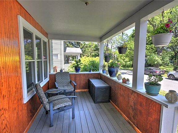 Want TURN-KEY This is IT! Convenient location to 590 and walking trails. Stroll to the lake or local restaurants! This 2BR 1Bath colonial is a buyer's dream come true for this price. Tons of charm with Hardwood Floors throughout, Formal Dining Room with newly installed Sliding Glass Door to yard (2018), REMODELED BATH, Detached 1 car garage with automatic opener and PRIVATE FENCED YARD! Low maintenance perennial landscaping. Rebuilt FRONT PORCH with TREX Decking! Walk up attic has spray foam insulation and is just waiting to be finished. All Mechanics updated too! Anderson Replacement Windows, High Efficiency TRANE Furnace 2006, Central Air 2019, Nest Thermostat, H2O tank 2015, 150Amp updated Electric, Garage Roof 2020. Extra dry basement, no sump needed! All appliances included! GREENLIGHT NETWORK Installed to HOUSE! Showings begin Friday at 3pm. Delayed negotiations. Offers due MONDAY 6/22 @ 4pm.