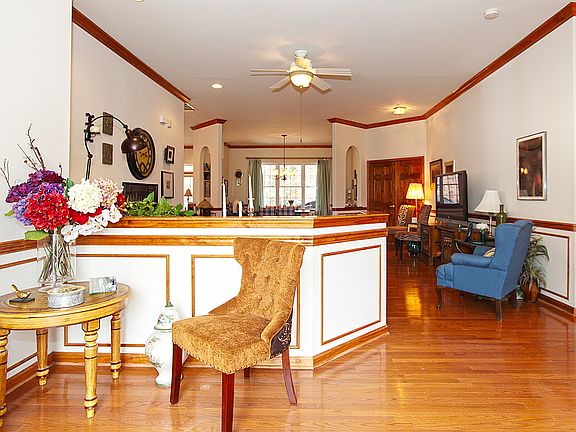 PRIDE OF OWNERSHIP is Evident When Your Enter This **GORGEOUS** Extended Heritage Model with UPGRADES GALORE on a PREMIUM Lot! Fabulous OPEN FLOOR PL with Gleaming Hardwood Floors, CUSTOM WOOD DOORS, CROWN, CHAIR RAIL and SHADOW BOX MOULDINGS. All Walls With Rounded Corners!Eat-in Kitchen w Corian Counters, Double WALL-OVEN and Up-graded Cabinets.Family Rm W Gas Fireplace Leads to COVERED PATIO which Backs to Wood for TOTAL Privacy! Recessed Lights, Ceiling Fans, Water Purifier...the list goes on!