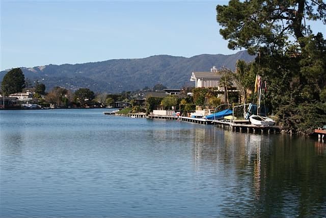 LAGOON LIVING: Southwest exposure, full sun all day. Easy walk to town, shopping, restaurants, bike path, ferry. Views of tranquil lagoon, Belvedere Island, and Mt. Tamalpais. Swim, sail, canoe, kayak and paddleboat off your own dock. Also a lap pool, spa and sauna. Wonderful opportunity to remodel or start over.