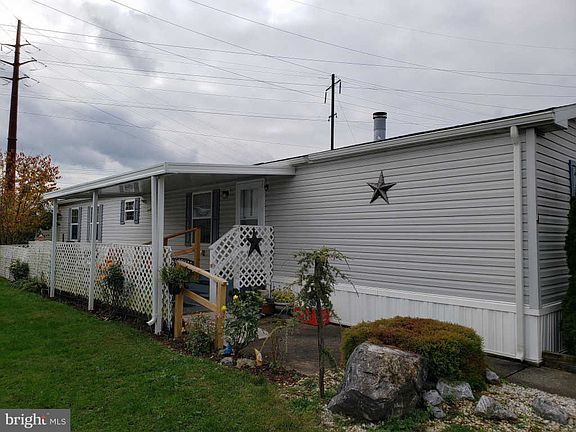 STEP SAVER - This cozy 2 Bedroom 16 x 70 Redman offers a split bedroom plan, spacious living room with stone mantle fireplace, large eat-in Kitchen-all appliances included (waher, dryer & dishwasher less than 3 years old), dining area, and laundry/pantry. The Primary Bedroom has a walk-in closet, ceiling fan and private Bathroom with jetted tub and Stall Shower. Bedroom 2 also offers a walk-in closet. Located in Penn Court MHP and featuring a covered deck and storage shed. There is lovely landscaping with a variety of flowers and shrubs. Conveniently located and walking distance to shopping, restaurants and more. Lovingly maintained and recent updates include patio roof ($4000), walkup ramp ($1200), new shed roof ($800), new water heater 2019 ($500), and Rain gutters replaced. Economical electric avg $130 monthly budget! Park rent includes water & sewer. Don't DELAY!