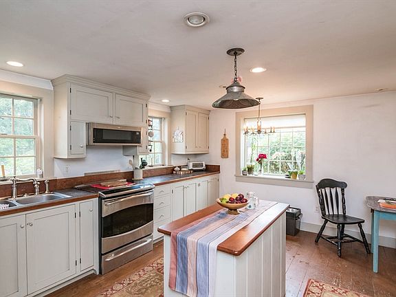 Do not judge a book by it's cover! This home needs a new roof but in 2005 it was completely gutted, restored and remodeled while keeping some of yesterday's elegance and adding tremendous up to date amenities. There are beautifully made custom kitchen cabinets and vanities along with a reproduction Rumford fireplace to name just a few highlights. The roomy addition that was added features a sunroom with 3 walls of windows that looks out to the picturesque and private back yard. Not only has this home been wonderfully restored it has been completely updated including electrical wiring and panels, plumbing, Buderus high end heating system and so much more all as per owner. There is a concrete foundation all set and ready for an extra deep 2 car garage with room for a workshop as well. Lots of backyard space to enjoy with a large storage shed. This home is truly a treasure! Make your appointment today.