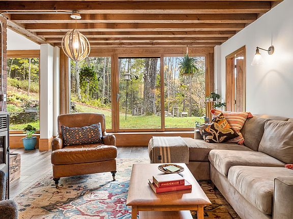 This fabulous, energy efficient "earth shelter" home was designed by acclaimed local architect Don Metz to take full advantage of its beautiful natural setting. With an open concept floor plan the home has 3 bedrooms, 2 bathrooms, and a detached 2 car garage. Recent updates include new flooring, heat and a/c via heat pumps, a generator, solar panels and new lighting. Lovely ridgeline views, outdoor patio and fireplace and great privacy. This is a great one!