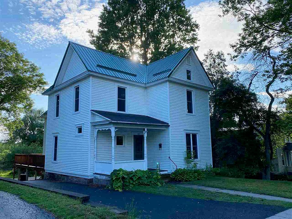 This well-built and recently-remodeled home is situated on a riverfront village lot with an easy walk to SUNY or downtown. Updates include newer furnace, remodeled kitchen and new baths, new windows and siding, metal roof, large deck overlooking the back yard and river. You'll also find the details you love in an older home: hardwood floors, natural woodwork, wide mouldings, dining-room built-ins, and a spacious kitchen. Formal foyer, living room, formal dining, office (or 5th BR), a large kitchen, bath with shower and laundry/mudroom are on the first floor, with a full bath and 4 bedrooms upstairs. There is a dry walk-out basement, and good storage area. The deep, private lawn leads to the waterfront, perfect for kayaking. Taxes listed do not reflect STAR.