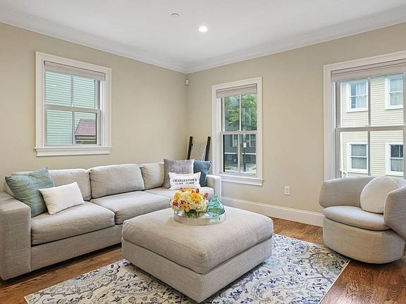 Located on a gas lit street between Monument Square and historic town center, this exquisitely renovated 2BR/2.5BA PH duplex features 1,200+sf of living space and a desirable layout. The spacious and open main level features three sunny exposures, a generous living/dining "great room", and a chef's kitchen with white shaker cabinetry, stainless appliances, and expansive quartz topped peninsula w/bar seating. A corner exposure master bedroom w/custom walk-in closet and en-suite full bath w/marble topped vanity and tub; and a large second bedroom w/attached full bath w/glass enclosed shower w/Carrara marble surround, make up the upper level. This home offers the perfect outdoor entertaining oasis w/a spectacular private roof deck featuring views of the Monument and Boston skyline, and a gas line for grilling - accessed via a head house w/wet bar and beverage refrigerator. Amenities: walnut stained HW floors, crown molding, built-in speakers, central air, in-unit W/D, and private storage.