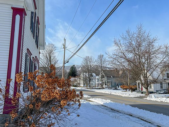 Make this charming rental your base for a memorable ski season in Ludlow. 43 Pleasant Street is a great property located on the Okemo Shuttle Route and is within walking distance to local shops, a grocery store, fine restaurants and cocktail bars. The home features an expansive layout with two dining areas, two living rooms, and multiple sleeping spaces, including a den with a futon bed on the main level, three bedrooms upstairs(two with queen beds, one with a twin bed), and a cozy skylight room with a pullout couch, comfortably sleeping up to 8 people. The entrance through the enclosed sun porch leads to a formal dining area, kitchen with walk-in pantry, mudroom with laundry, breakfast nook, full bathroom, den and two living rooms, which are separated by French doors. The second bathroom is located upstairs. The large backyard is perfect for kids to play in the snow. There are solar panels which help drastically reduce electric costs, and the infrared space heaters ensure added comfort. SEASONAL RENTAL - Available November 15, 2024 to April 15, 2025.