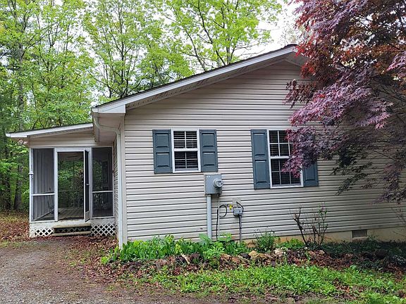 Hard to find one-level living in this great mountain home in an established community! Just a few miles out of Blairsville, with easy access to medical and shopping. This low maintenance home sits on 1.245 acres and offers plenty of privacy. Enjoy the peace and quiet of a beautiful wooded lot with a gently sloping front yard. The covered front porch runs the length of the house and there's a screened porch on the back of the house. Kitchen has been upgraded with granite countertops, and has a large island for additional seating. New appliances, hardwood floors. The open concept design allows for many decorating options. A detached garage with a huge 340sq' workshop is any hobbyist's dream!