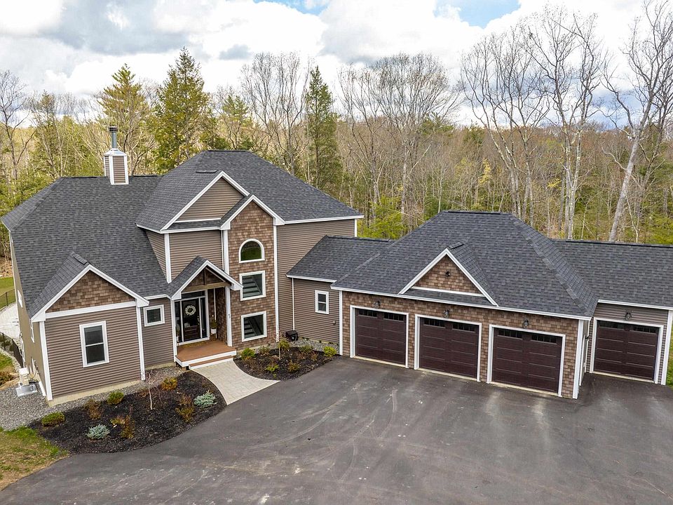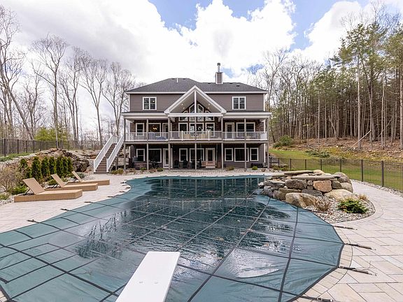 Luxury & Land! This 2021 custom craftsman built estate is an absolute must see! Over 4500 ft.² of amazing space to make memories in. This beauty sits on 10 private acres, yet only 25 min to Portsmouth, Manchester, UNH, 1 hr Boston! Architectually stunning exterior 4 bay auto-door garage to store all of your toys. Beautifully landscaped gardens with irrigation system & invisible dog fence. Stroll down to take a swim in your salt water heated swimming pool w/custom waterfall feature & 2000 ft.² stone patio. New salt watervhot tub too! Interior features breath-taking cathedral ceilings w/ maximized outdoor views. Grand stone wood-burning fireplace is adorned with custom mahogany wood box & shelves to display cherished items. Hickory hardwood floors throughout. Next is sunny dining area, then into a chef's dream kitchen. You'll have 9 ft Taj Mahal quartzite island w/butcher block, Bosch appliances, & extra tall cabinets with walk-in pantry. 1st fl main bedroom suite hosts private door to your 52 ft.² TREX deck covered porch. Dual vanity sinks & shower heads, walk-in ceramic tile shower, private wash closet, & walk-in closet to envy. Upstairs has open office/play space, 3 large bedrooms w/closets, 2 full baths & storage room. Lower Level is a large open family entertainment area. Space could serve play &game room,,home theater & bar area to watch the game. Home gym with rubber floors & another full bath to shower off workout or swim. Don't miss out on this amazing home retreat!
