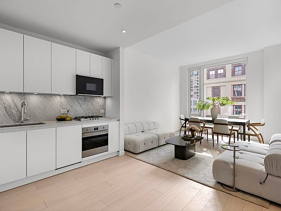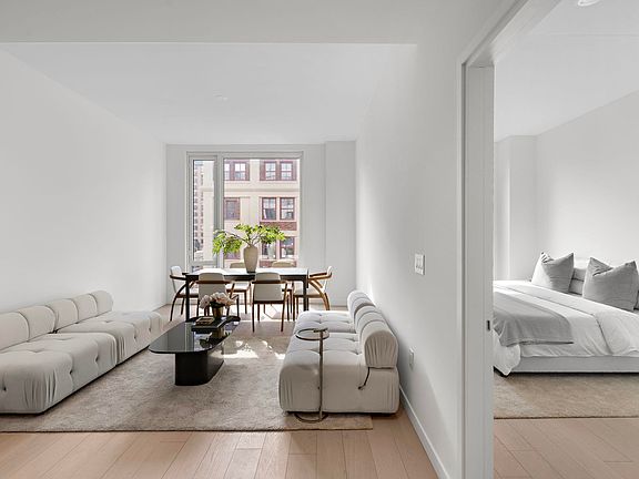 Residents enjoy a curated lifestyle of wellness and service: a private rooftop lounge, interactive fitness studio, concierge, refrigerated package room, private storage lockers, and a reimagined cobblestone arrival inspired by Tribeca’s most charming corners.