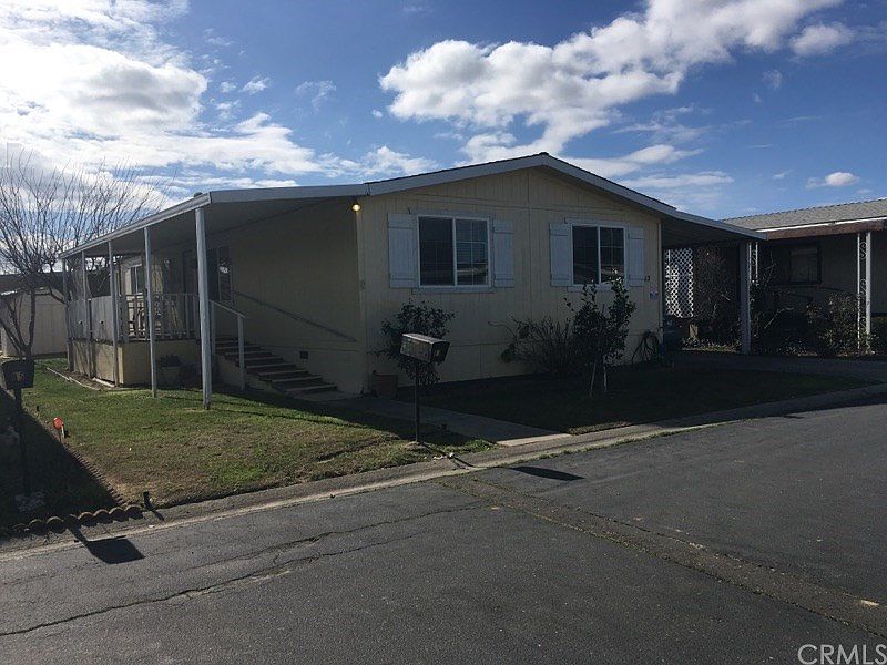 Sought-after spacious double wide mobile home has 3 bedrooms, 2 baths, 1248 SQFT located in desirable area. Roomy, updated eatin kitchen with gorgeous granite counters and newer cabinets, large living room, separate dining room used as an office. Master bedroom has walk-in closet with customized shelving and master bath w/shower/tub. Ceiling fans, landscaped yard and carport area. Newer paint and flooring. This all-age park has swimming pool, dog parks and recreational room. Updated bathrooms, dual pane windows, some updated lighting, panel doors, 2 sheds, 2 outdoor patios and more. Handy laundry nook with storage area and cabinets. Rancho Grande Mobile Home Park management to approve buyer. Monthly space rent. Move-in ready!