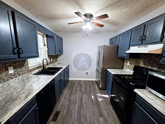 Available from October 10th 2025! This lovely home has four bedrooms and two full baths. Situated in a quiet community with a decorators touch and rocking chair porches perfect for those GA Fall evenings. The kitchen has stainless-steel appliances and modern dark blue cabinets. Flooring through the house, new flooring upstairs, new carpet on the stairs. The Primary/Master Suite is on the main floor! Two great-sized bedrooms upstairs! Beautiful front porch for relaxing and back porch is screened. 2 car garage, a lot of storage space in the basement.