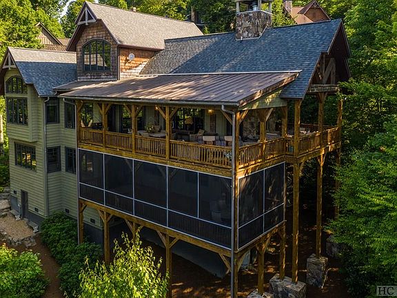 This stylish signature home is perched in the heart of Trillium Landings near Lake Glenville. With a spacious and open floor plan, the naturally bright great room contains a floor-to-ceiling stone fireplace and flows seamlessly to a delightful gourmet kitchen featuring an expansive island. The dining area conveniently sits beside the kitchen and a row of windows with a view. The home thoughtfully has its master bedroom and private master bath on the main, a wrap-around covered deck with fireplace for relaxed evening conversations, and an elevated upper-level game room with clear sightline to Lake Glenville. The lower level is perfect for accommodating family and friends in the three additional bedrooms, a media room, and two full guest bathrooms. Moreover, a generously sized laundry room and multiple closets provide ample space to maintain personal items out of sight. The attached two-car garage is a bonus when inclement weather arrives, as well as containing custom closets for storing recreational and automotive goods. A new shingle roof was installed in late 2020. If you have a dog, the existing invisible fence line can be used to keep your pet within the bounds of the home's property. While membership to Trillium Links and Lake Club is NOT REQUIRED to purchase and own this home, being a member in the Club enables dining at The Landings, a short distance down hill on the shore of Lake Glenville and at the welcoming Trillium Clubhouse beside the golf course. The Club additionally provides pool, tennis, croquet, and fitness facilities. It is rare to find a move-in-ready exceptional home that enables mountain views, lake living, and a country club lifestyle, as well as being located near great shopping and restaurants found in Cashiers and Highlands. Yet, here it is... you can own a home that has it all!