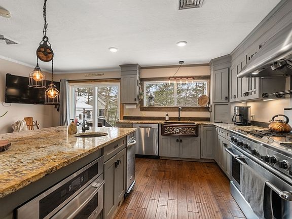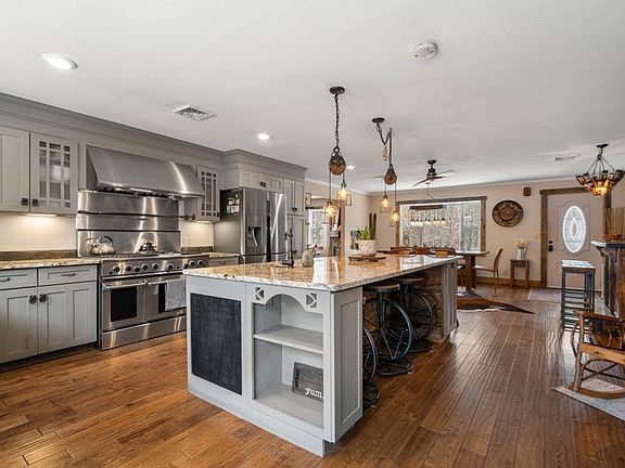 - Features: Ceiling Fan(s), Flooring - Hardwood, Dining Area, Countertops - Stone/Granite/Solid, Countertops - Upgraded, Deck - Exterior, Exterior Access, Open Floorplan, Recessed Lighting, Remodeled, Stainless Steel Appliances, Wine Chiller, Gas Stove, Lighting - Pendant