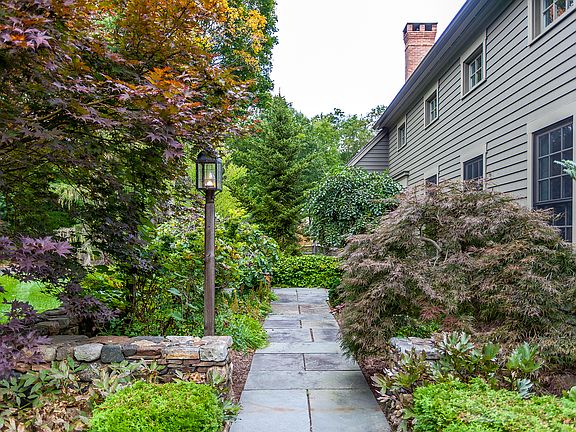 Sophisticated Colonial on 2 park like acres with mature landscaping of fruit trees, Japanese maples, hydrangeas, stone walls, privacy and exterior lighting that surround the home. The yard is fully fenced with views of over 10 acres of land preserve that includes the Pomperaug river. This home offers high end finishes and fabulous details throughout, hardwood floors, 4 bedrooms, (potential 5th) 3.5 baths and 4 fireplaces Enjoy the open floor plan, living room with vaulted ceilings, reclaimed wood wall feature, fireplace and wood beams. Updated bright kitchen with gorgeous light, 4'x10' center island with quartz counter, 2 sinks, professional stove, Caesar stone counters and custom cabinetry. The Kitchen opens to charming family room with Blue Stone Fireplace. The fabulous oversize sun filled dining room boasts a large fireplace and is lined with French doors that lead to a Blue Stone patio for outstanding outdoor entertaining. The main level also has one of two master bedrooms with vaulted ceilings, hardwood floors, fireplace and master bath with stone shower and and large soaking tub. The upper level consists of the second master bedroom with built in shelving and a full bath and 2 additional bedrooms.The lower level of the home is finished with a large media/play room, a second area for a gym and ample storage.The three-car garage has a finished upper level which could be a great game room.This home is fully renovated and ready for you just to unpack and enjoy!