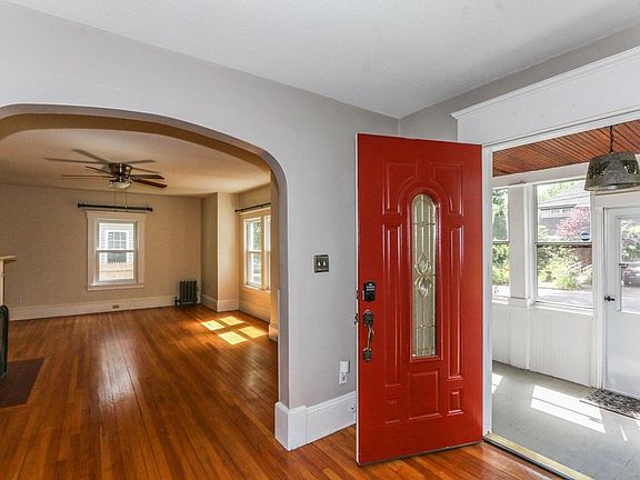 Charming and well maintained Colonial awaits its new owners. Upon entry through a lovely enclosed front porch, you will be greeted with a charming entry hallway/foyer with a handsome staircase with beautiful hardwood floors. Hardwoods extend throughout the large Living room with a brick fireplace and into the Formal Dining room. Kitchen offers stainless steel appliances and a back mudroom with exterior access to the large backyard which offers a stone pad and grassy areas, great for entertaining and a 2 car garage which has storage, electricity and can be used as a workshop or hangout space. Second floor offers 3 generously sized Bedrooms with hardwood floors with closets. The primary Bedroom has a enclosed balcony that oversees the backyard and can be used as an array of things, previously used as an offcie, it can also be a workout space or a wardrobe room. A large full Bathroom with shower and tub. This home is sure to please, come check it out today!