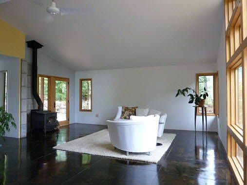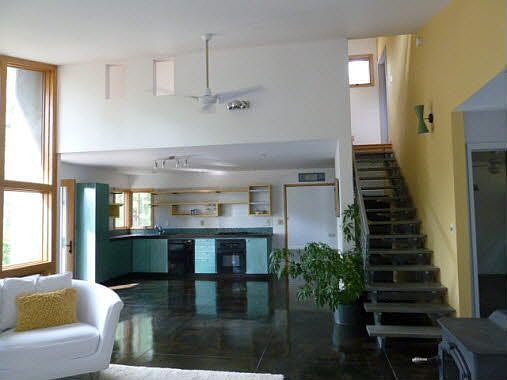 andquot;Dwellandquot; style living on a private, almost level acre lot. Wind up the private gravel drive to this unique home, only 12 minutes to downtown Asheville and 5 minutes to the Blue Ridge Parkway.This home is sleek, modern, open, and energy efficient, with hydronic floor heat and passive solar design. Concrete countertops, master suite on second floor with private 14x10 deck, second bedroom and bath on main, great room with woodstove, family room/studio area (19x27) wired for heavy use.Privacy, mountain views, and garden area. Perfect live/work flex space for creative people!