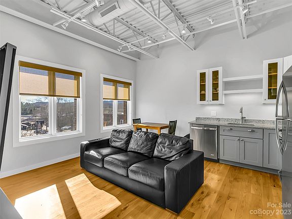Location is everything! 1 bedroom studio condo in central downtown Brevard, close to shopping, dining and music. You can have a bird's eye view of the Assault On The Carolinas bike race and the White Squirrel Festival without ever having to find a place to park! Purchase for yourself or invest as a short or long term rental. Stainless appliances, hardwood floors and a designated parking space in the Heart of Brevard at an affordable price is a rare find! Lower level access through the basement garage or from the Plaza. Stairs or elevator access.