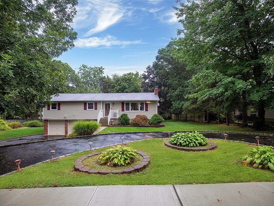 Lovely 3 bedroom 3 bath raised ranch on large property. Featuring hardwood floors, central air, fireplace, dining room and eat in kitchen that leads to a deck. Basement has full bath and entrance to garage. Young roof, windows and siding. Laundry room on first floor. Call today!