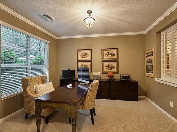 WASHER, DRYER AND REFRIGERATOR INCLUDED AS WELL AS LAWN SERVICE, POOL SERVICE AND TRASH PICKUP! All walls and cabinets currently being painted in white and lighting fixtures updated to transitional style. Much desired 5 bedroom home with 3.5 baths in Sterling Ridge area of The Woodlands. Perfect family home with 2nd bedroom down with ensuite bath. Formal dining, kitchen open to family with tons of cabinets and granite countertops. gaslog fireplace in family room, french doors to back yard with lots of landscaping and wonderful pool/hot tub and fireplace area plus play area as well. Upstairs has open area to large gameroom with secondary bedrooms and Jack and Jill bath, Zoned to Coulson Tough Elementary and within walking distance to the YMCA, library and various restaurants.