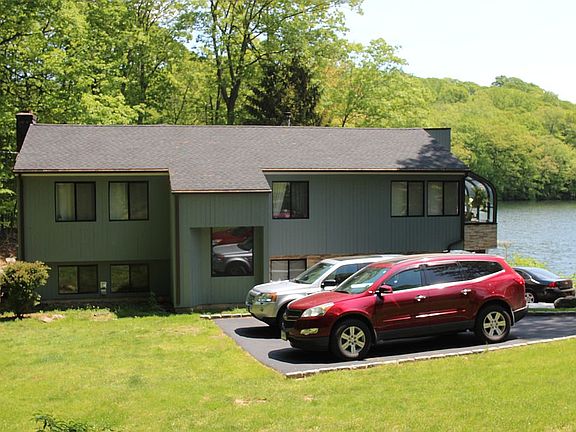 “Staycation” That is the one word to describe this unique waterfront home tucked away in a Cul-de-sac. You will enjoy all the outdoor activities and views throughout the summer and stay warm with the S9 wood burning furnace during the winter. Relax in the 4-person Sauna room after a good workout or a casual trail walk. This home is minutes away from the New York border and 1 Hr. 20 min to New York City. Those who work from home will greatly benefit with great local restaurants and the Mall within a short drive away. The additional downstairs room is perfect for visitors or as a home office overlooking the lake. (APPROVED BUYERS ONLY PLEASE)