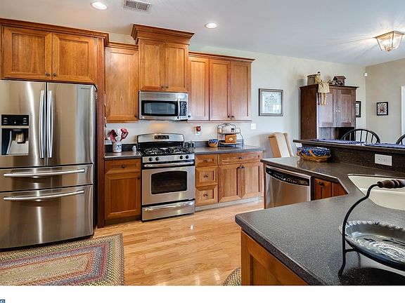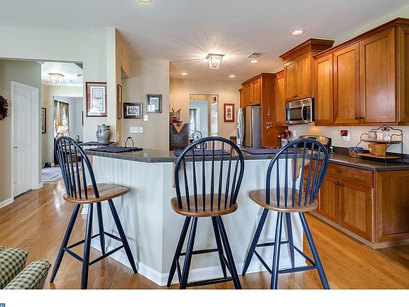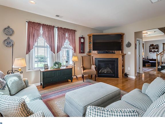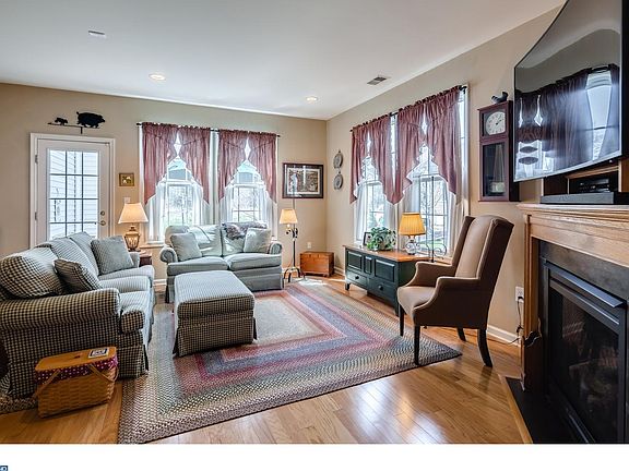 Welcome Home to Chesterfield Downs! This well-maintained end unit Chatham model is light and bright throughout, with the perfect blend of comfort and elegance. You will enjoy the open floor plan, formal living room and dining room, family room with lots of windows, recessed lighting and gas fireplace, large eat-in kitchen with Corian countertops, upgraded appliances and 42" cabinets w/butler's pantry, upgraded carpet and gorgeous hardwood floors on the first floor; hand crafted light fixtures inside and out; recently painted throughout. Upstairs, you will find a nicely sized master bedroom with two large walk-in closets and master bath with Corian countertops, soaking tub, and separate stall shower; two additional bedrooms and full hall bath; ceiling fans in most rooms; pull down stairs allowing access to attic for storage. Whether indoors or outdoors, this home is ideal for casual and formal entertaining. Backing to open space, you will enjoy summer fun and relaxation on the patio. Easy access to Rts 206,295,195,& NJTPK. Short walk to elem. school, parks/walking paths. A MUST SEE!