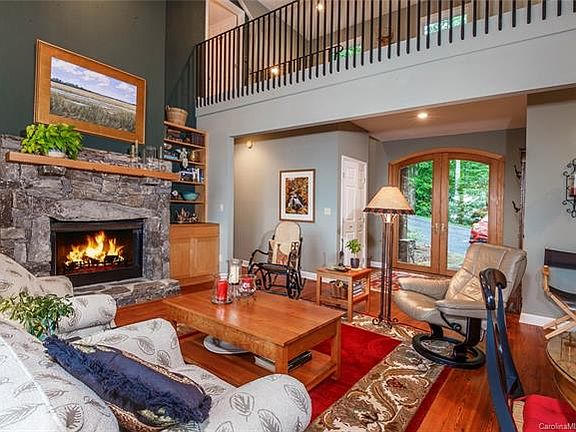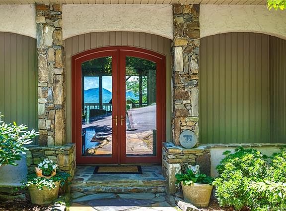 You'll be mesmerized by the Mountain Ranges as you approach the double glass Front Doors. See right through to the heavenly vistas. Step inside to antique, Heart Pine Floors in a 2-story Great Room featuring Gas/Stone FP, bridge to Upper Level and all glass doors flanking the rear for optimum view. Ideal kitchen has arched opening to Great Room inclusive of breakfast bar, 12' length, built-in desk overlooking layers of mountains, gas cooktop plus walk-in pantry. Office or BR with Bay window faces front of home. 15x15 Master opens to rear deck with newly renovated Master Bath having His/Hers granite vanities, heated tile floors, large tiled shower + sitting area. Two Guest BR's & Bath in upper level at opposite ends of bridge. Lower Level has Family Rm/Bonus Rm with antique Heart Pine Floors, wet bar w/glass upper cabinetry & powder room. Terrific parking with large lower driveway into 2 car garage plus convenient guest parking on main level by front door. Quiet street with $M View!
