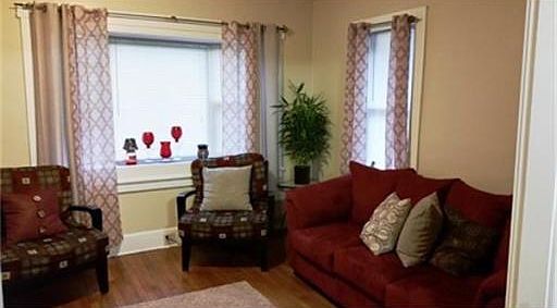 Must see this charming, well- kept home . Lots of updates .Newer kitchen , newer windows, siding (as per owner.) Efficient gas heat..Two full baths...Potential living space in the lower level.This home has hardwood floors, large master to accomodate king bed-double closets.Second bath has a 2 person jacuzzi tub for relaxation . Flat yard , fenced in.**Third bedroom was an eclosed porch and has elec heat. Large Walk-up attic has possibilities for future living space.maybe master?..Very deceiving- must be seen!