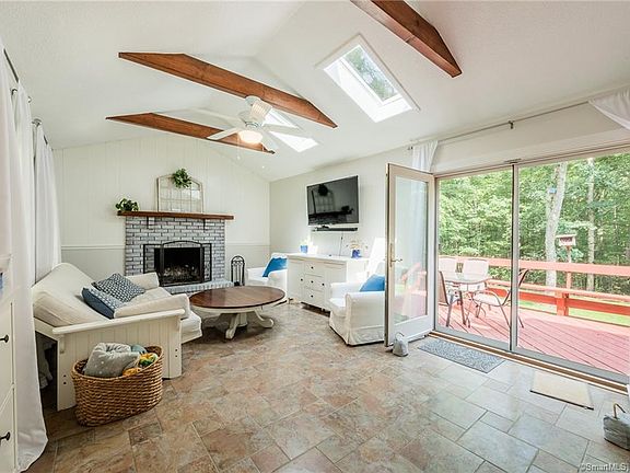 - RoomDescription: Floor - Hardwood, Formal, Bedroom Ceiling Fan(s), Master Bedroom Ceiling Fan(s), Living Room Floor - Hardwood, Fireplace, Slider, Skylight, Dining Area Floor - Hardwood, Kitchen Floor - Vinyl, Family Room Cathedral Ceiling, Sun Room Skylight