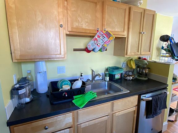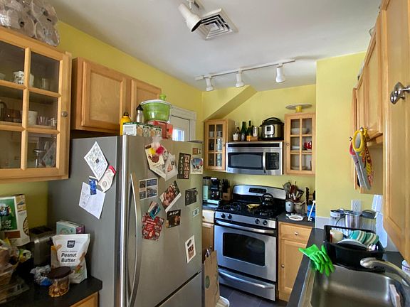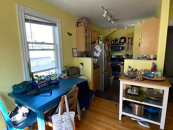 Available any time between June 1 - July 1. One bedroom/one full bathroom + a half bath duplex apartment in a quiet neighborhood of Cambridge, MA. The unit starts on the 2nd floor of the building which has the kitchen, half bath w/ in-unit washer/dryer and the living room and the 3rd floor has the bedroom with a Juliet balcony and full bathroom. The galley kitchen opens up to a dining area and also has access to two of the balconies. It features stainless steel appliances, granite countertop, gas cooking, a dishwasher and a built-in microwave. The living room has an electric fireplace with exposed brick and built-in bookshelves. Hardwood floors throughout. Central AC/Heat. Off-street parking in the driveway is included in rent. Tenants responsible for electricity and gas. Extra lockable storage bin in basement.