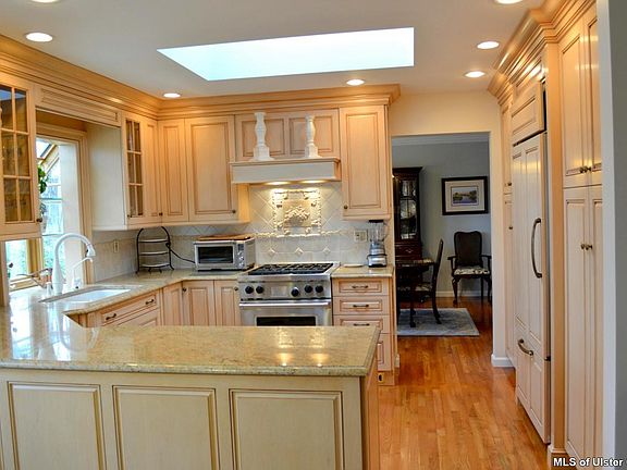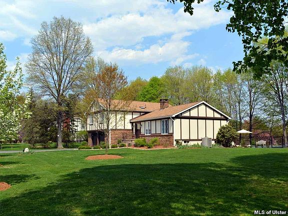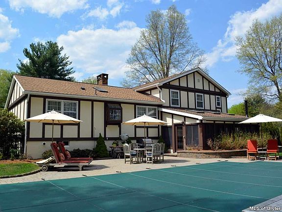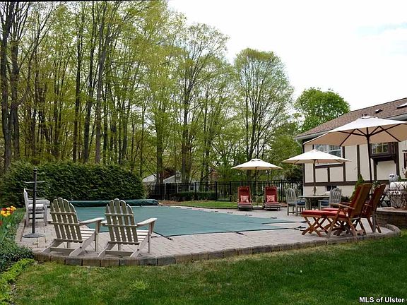 This lovely and meticulously maintained home in a desirable neighborhood comes with top-tier improvements and the most inviting inground pool and lounge-worthy patio. Classic design with gourmet kitchen with Wolf stove, Subzero fridge and wine cooler, custom cabinetry and granite counters. In addition to the living room with two-sided fireplace, there is a family room with propane fireplace and a 22' x 13' enclosed porch with fabulous garden views. Spacious 4 bedrooms, one ensuite, with custom closets and pristine carpet (hardwood floors on main level). Master landscaping and mature trees by the pool provide for a private summer oasis and good times! Only 10 minutes to NYS Thruway, hip Uptown Kingston and historic Hurley, 5 minutes to Wiltwyk Country Club.