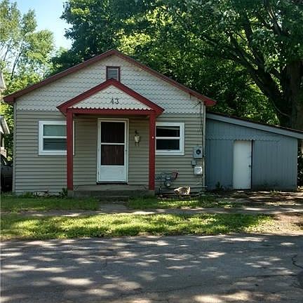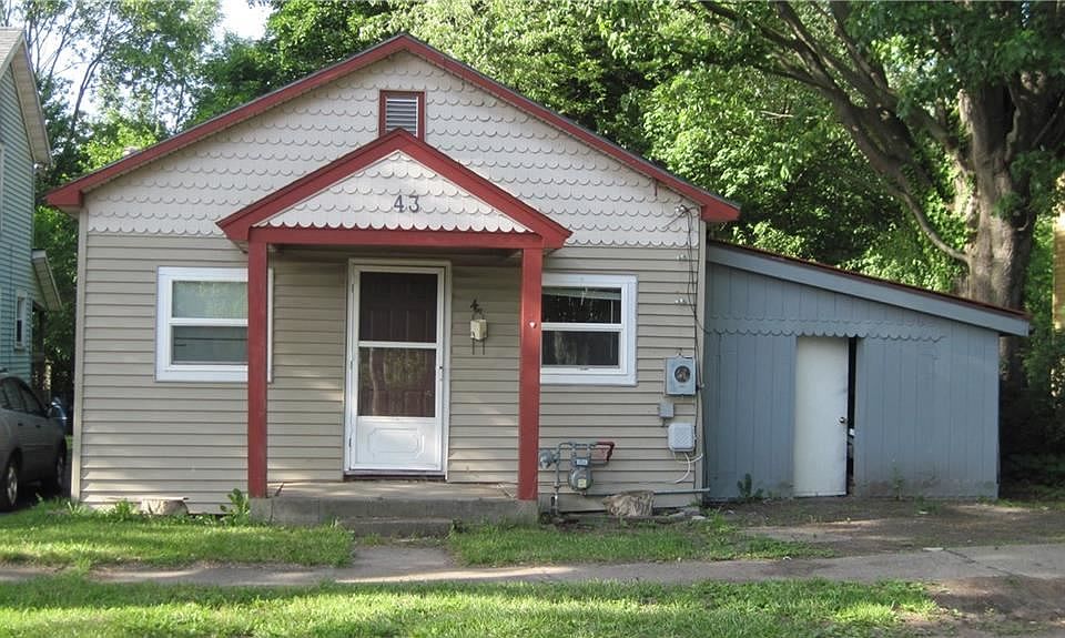 There is a potential for two or three bedrooms with this ranch home. Current laundry room area can be made into a bedroom. Former garage has an exterior door installed and is used for extra storage. This can be a residential rental or a starter home.